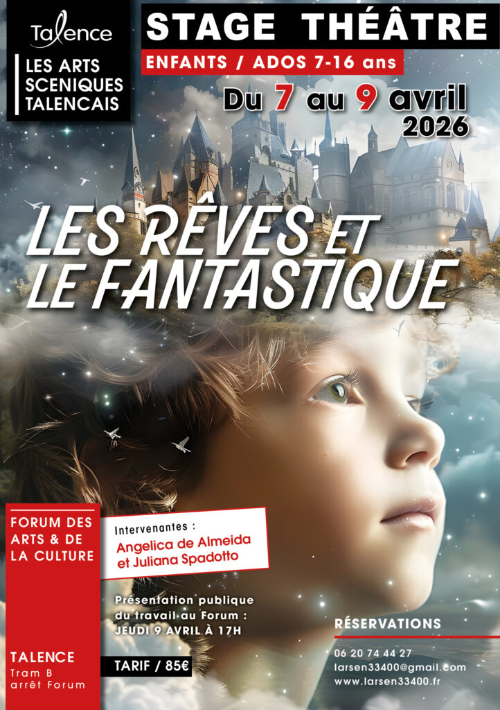 - Stage théâtre enfants & ados, du 7 au 9 avril)La fiche d’inscription est à télécharger ici : N’hésitez pas à nous contacter pour en savoir plus.